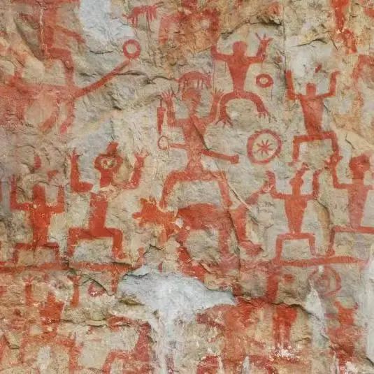 广西左江花山岩画群分布于延绵260多公里、幅员2800平方公里的左江、明江两岸,目前共发现83个地点,183处,287画组,是我国迄今发现的最大的岩画群。