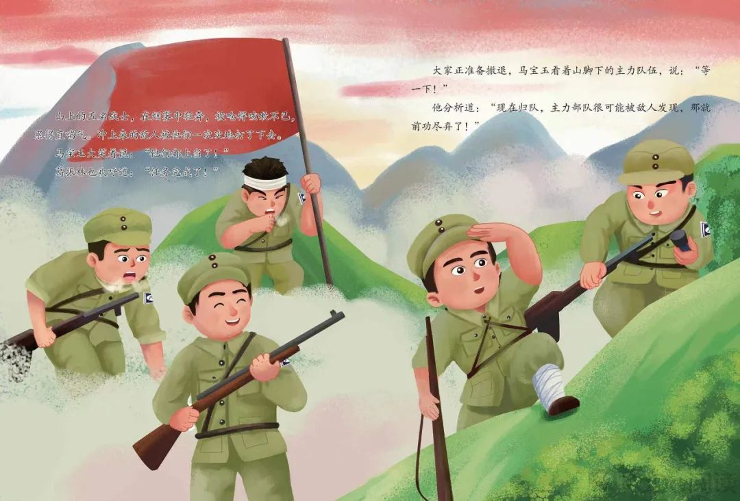 1941年秋,日军进犯晋察冀根据地。八路军和群众正在有序转移。六班的五位战士负责吸引敌人的注意,掩护群众和连队转移。五位战士不负众望 ,成功让敌人以为他们五个是主力部队,一路将敌人引诱到山顶后,五位战士英勇就义。