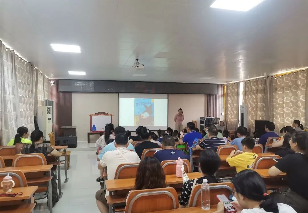 参观完图书馆,小朋友们来到多媒体室听图书馆老师讲解绘本故事。小朋友们聚精会神,被精彩的故事吸引着。