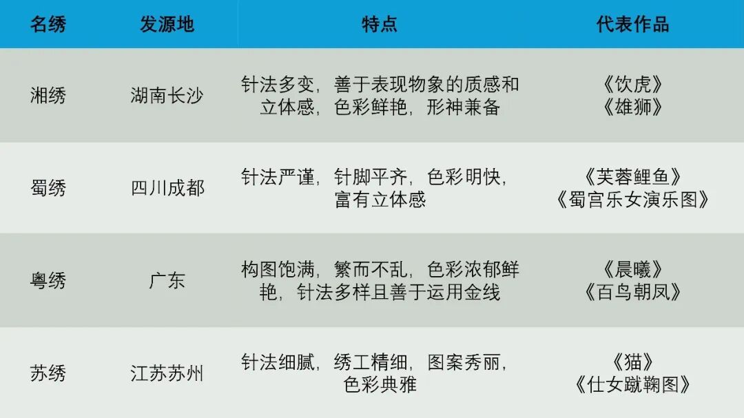 教育推广:四大名绣走进校园、社区开展刺绣培训课程、讲座、体验活动等,培养青少年对传统刺绣的兴趣,让更多人了解和学习刺绣技艺,为传承培养新生力量。
